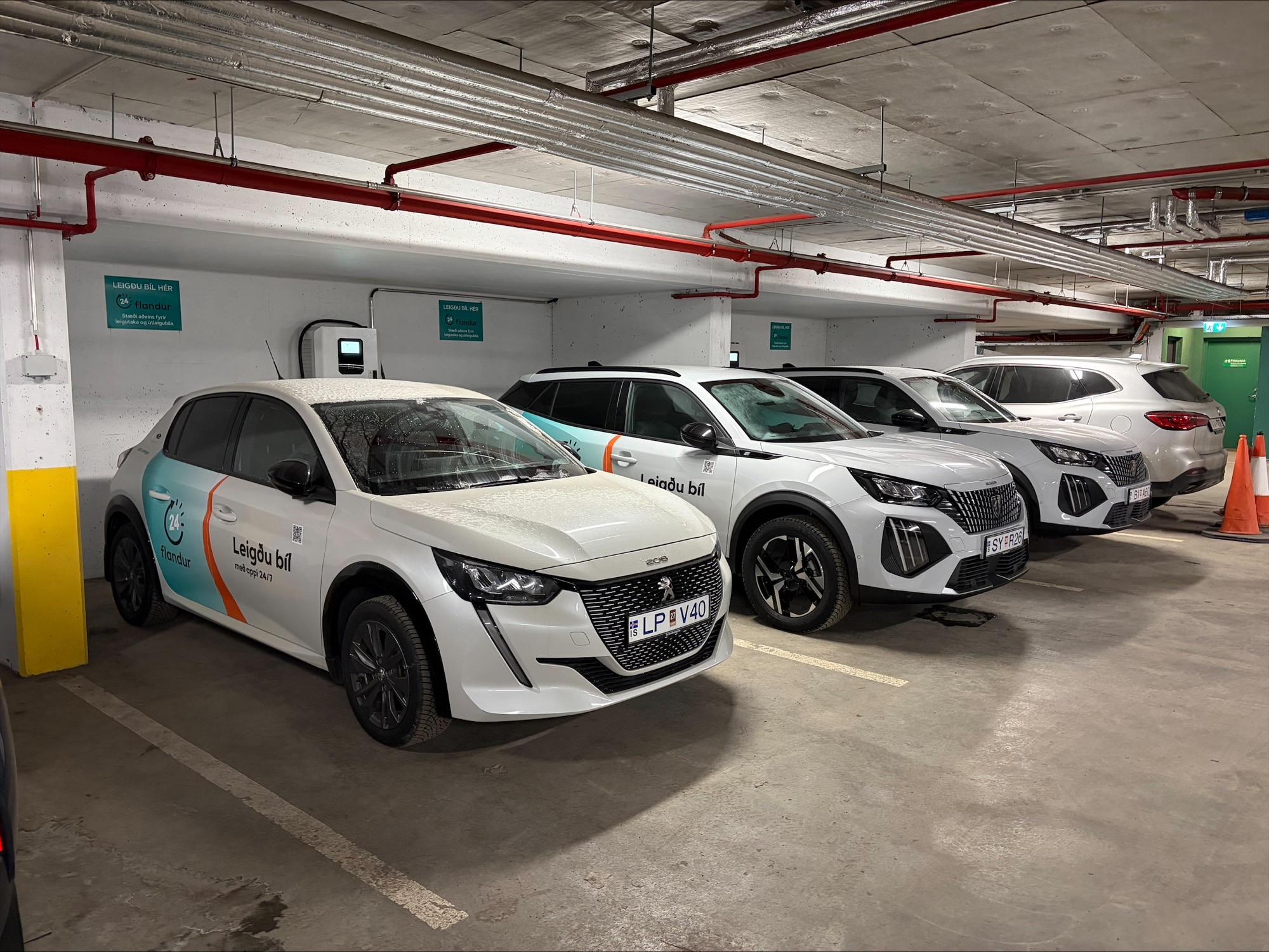 Bílaflotinn er alfarið rafknúinn og er rafmagn innifalið í sérmerktum bílastæðum í húsinu, þannig að hægt er að hlaða bílana frítt á staðnum.