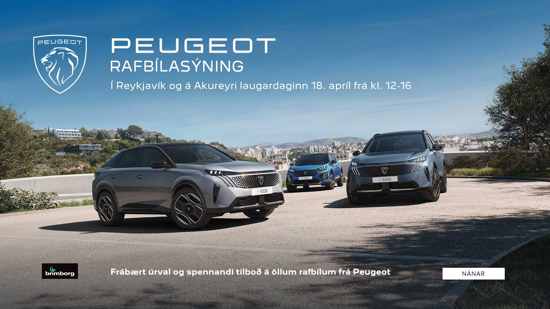 Öll eru hjartanlega velkomin að koma og skoða rafbíla Peugeot og upplifa heillandi gæði, tækni og akstursánægju.